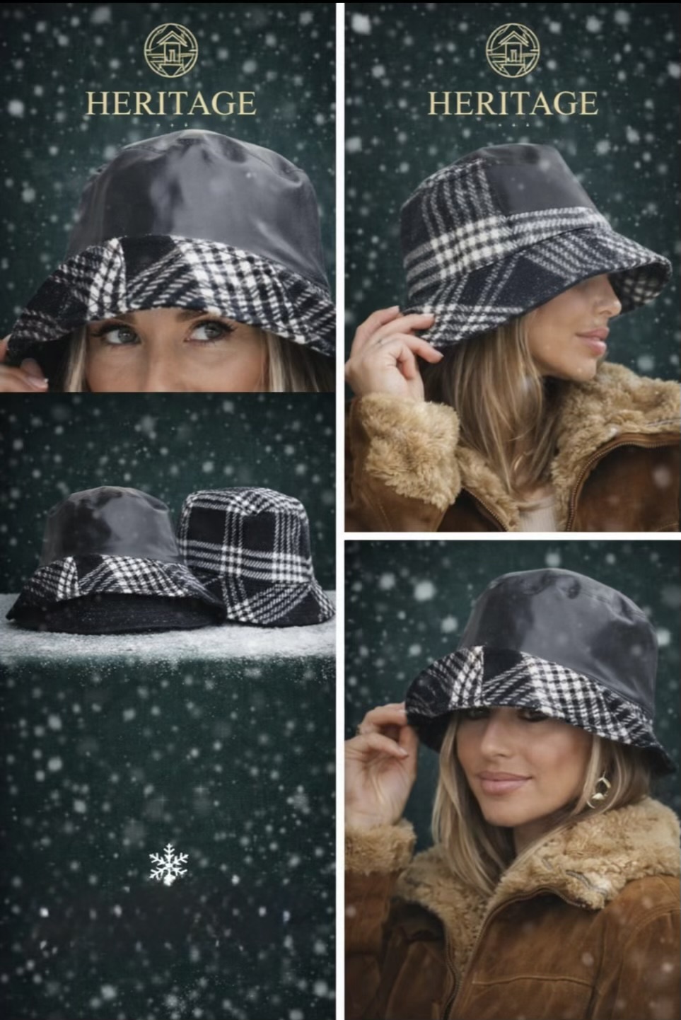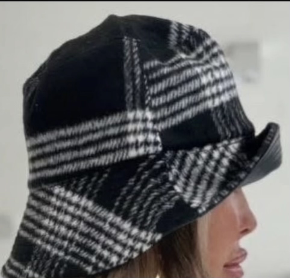 Stylový oboustranný bucket hat – černá koženka & kostka