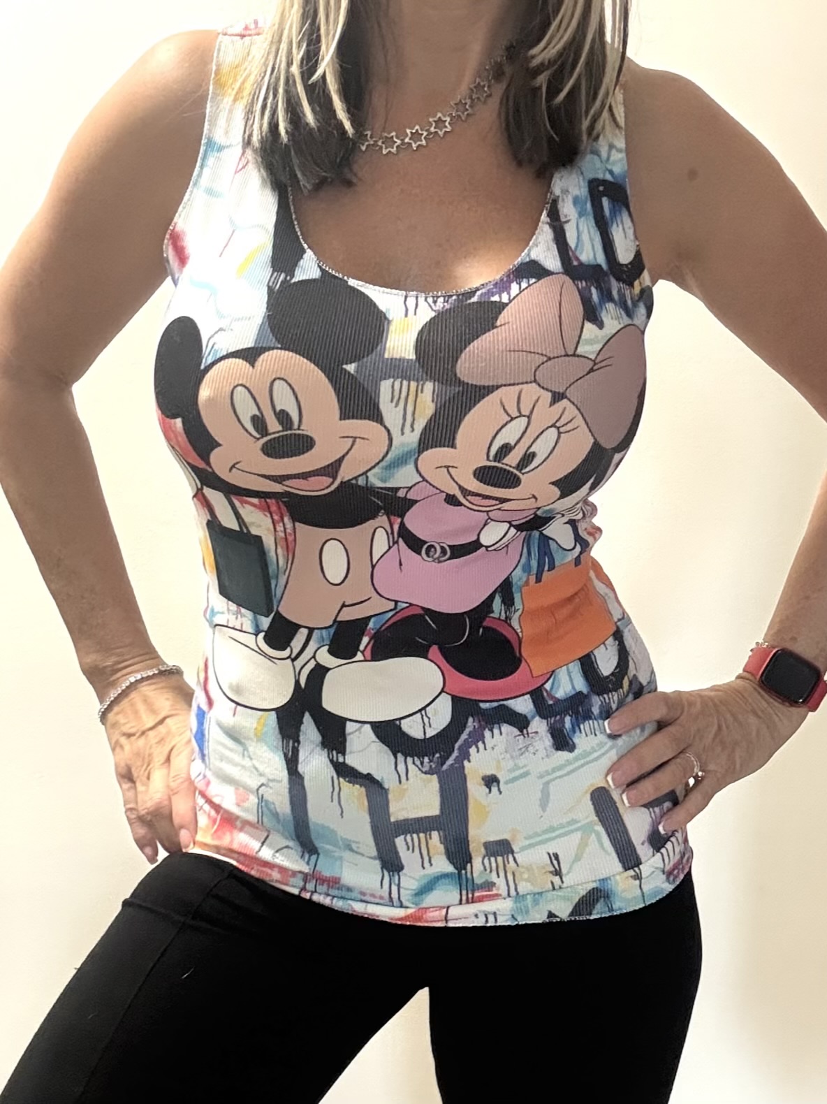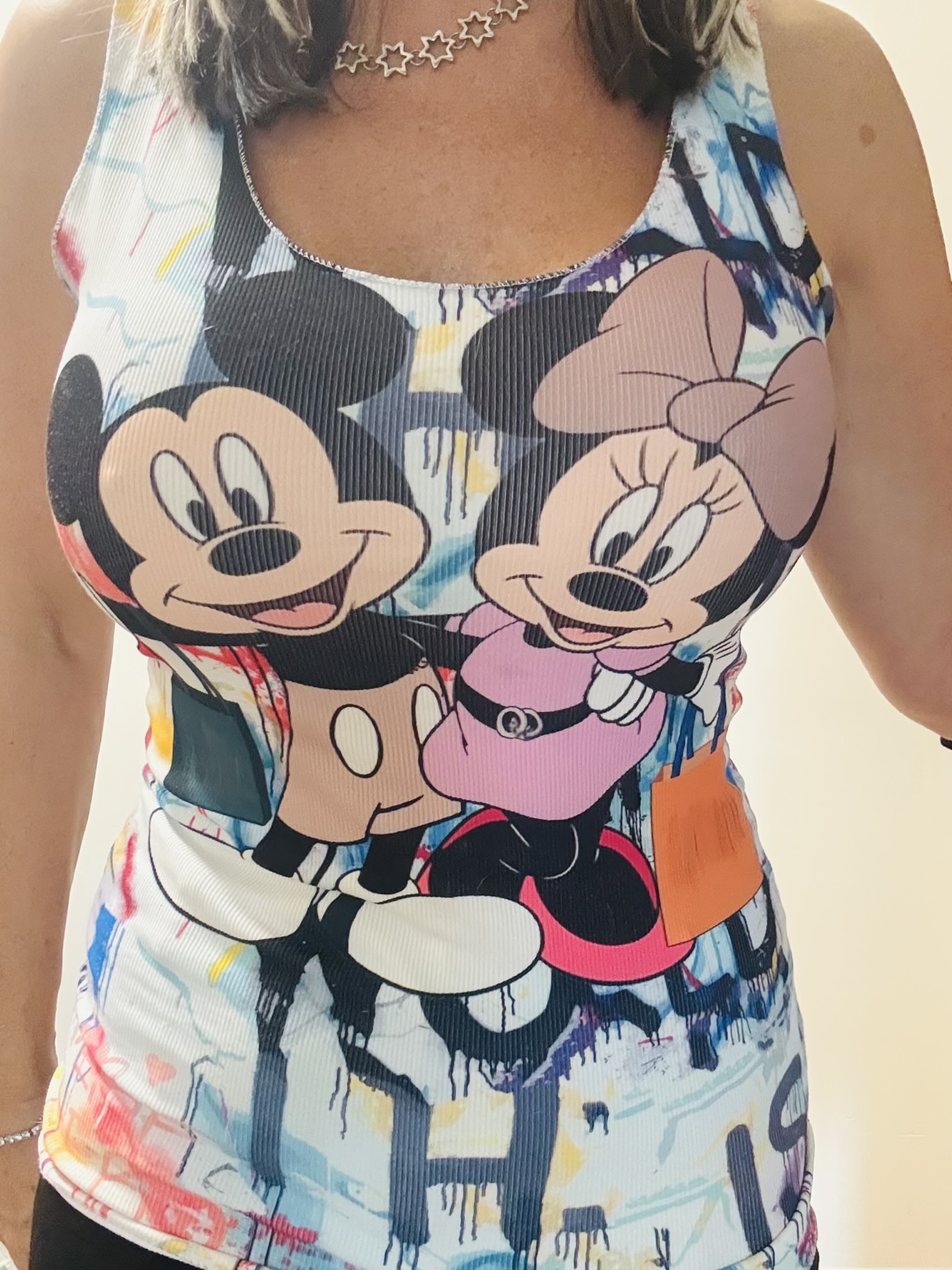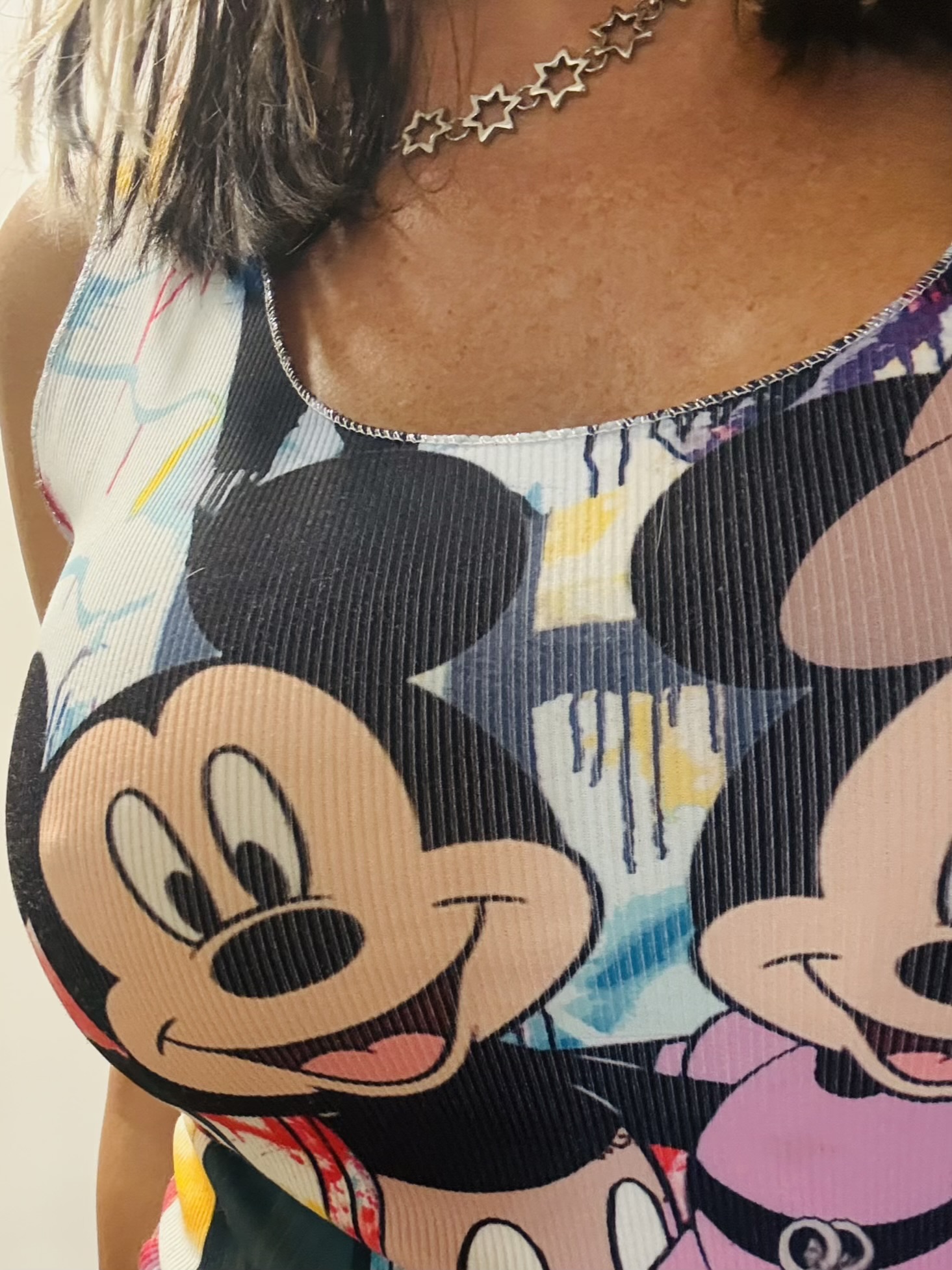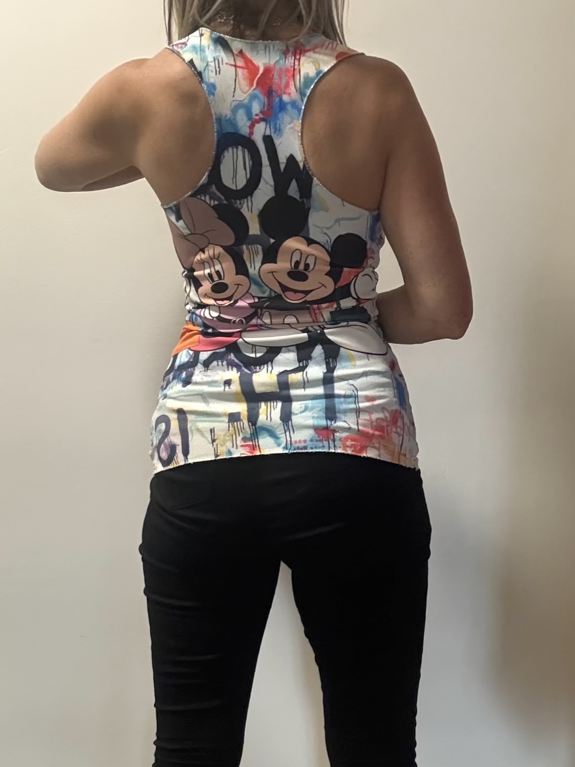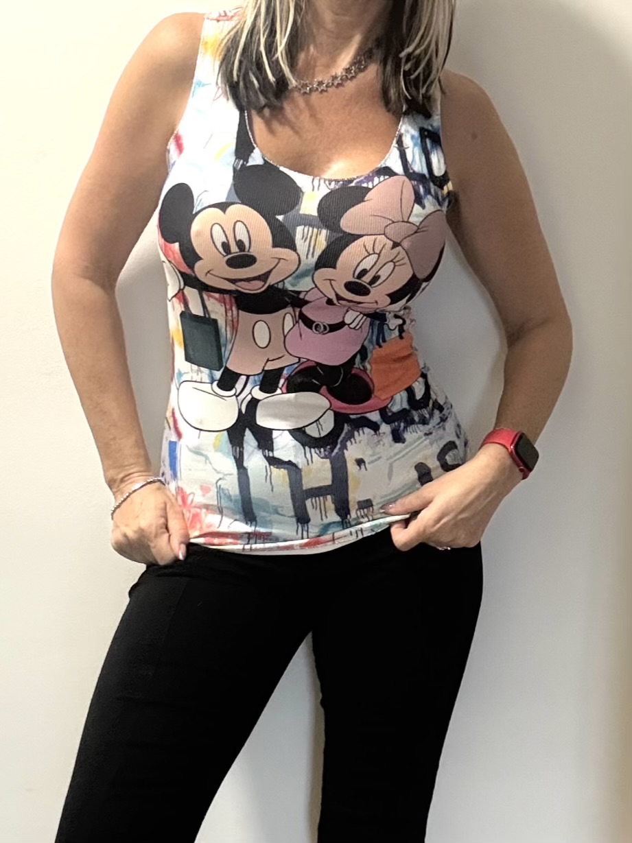 Nové veselé dlouhé tílko se super potiskem MickeyMouse – hodně elastické – skvěle sedí pro velikosti XS/S a M